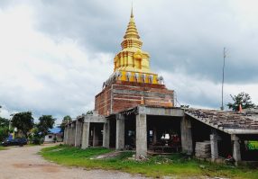 หลายปีผ่านไป ก็ได้มีพระธุดงค์ผ่านไปแถวนั้นและได้ปักกรดบำเพ็ญภาวนาที่หน้าผาแห่งนั้นพระธุดงค์เห็นเป็นที่เหมาะสมที่จะเป็นวัด จึงได้ไปบอกบุญแก่ชาวบ้านมาสร้างวัด และวัดนั้นก็ได้ชื่อว่า “วัดดานสาวคอย” และปัจจุบันได้รับพระราชทานชื่อจากสมเด็จพระนางเจ้าสิริกิติ์ พระบรมราชินีนาถว่า “วัดภูพานอุดมธรรม” และเกิดเป็นหมู่บ้านใหม่ขึ้นมา เรียกว่า “บ้านดานสาวคอย”